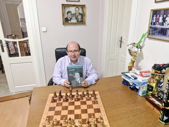 Foto 2 – Tibor Karolyi oma raamatuga Boris Spasski partiidest. Arhiivifoto.
