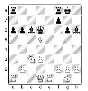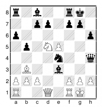 19.Re4! Lc7 Lipul pole kohta. 19...Lxd5 või 19...Ld7 peale tuleb muidugi kahvel 20.Rf6+. 20.Vc1!! Väga elegantne lahendus. 20...Oxc1 21.Lxc1 Vac8 Sidumise vastu must leidis rohtu, ent valge lipp kõõritab ka kuningatiivale. 22.Lh6 Le5 23.Lxg6+ Must alistus.